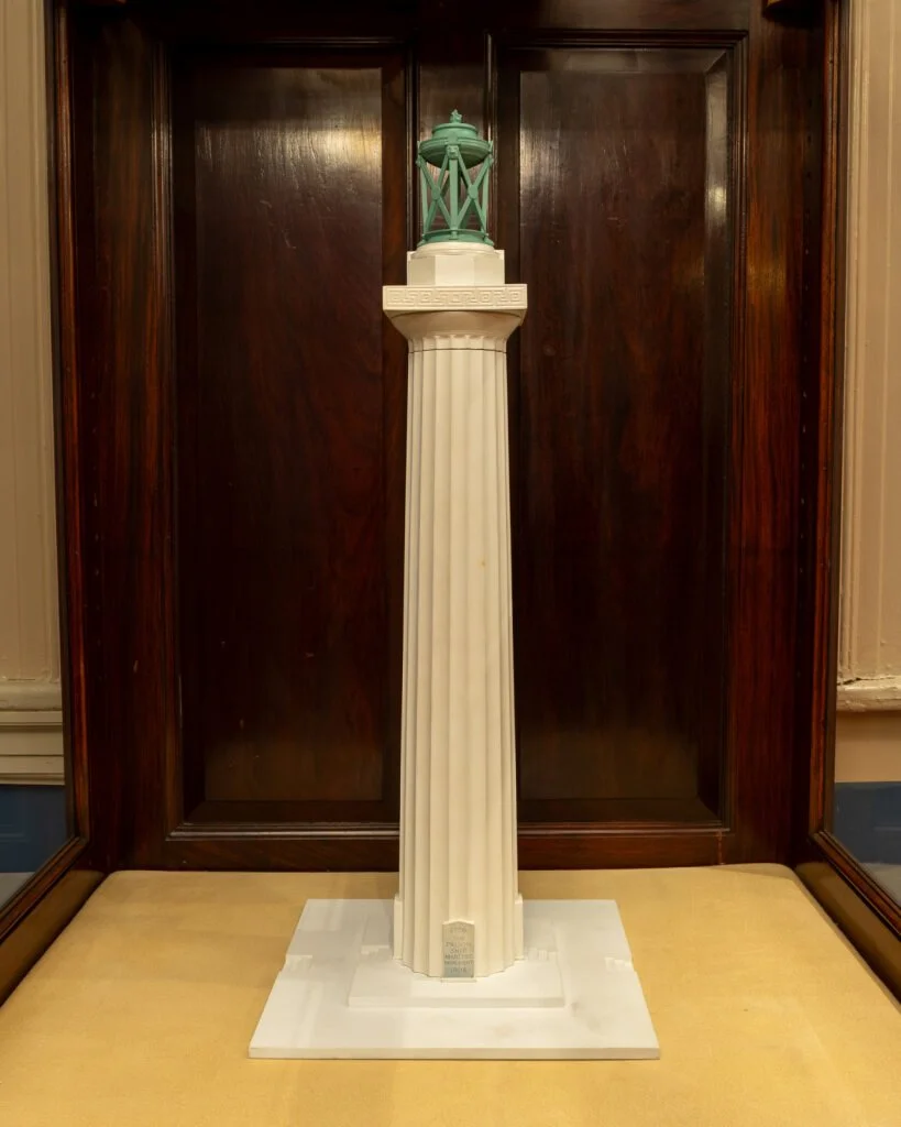 archictectual model of the Prison Ship martyrs Monument in fort greene park, brooklyn, ny; Jose Balboza, plaster, about 2005, brooklyn, ny; model Courtesy of janet T. skinner; photo courtesy of Fraunces Tavern Museum where it is currently on loan.